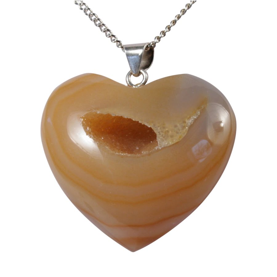 De edelsteen Agaat geeft rust, ontspanning en veiligeheid. De kleine geode (opening) in het hart heeft kleine glinsterende kristalletjes. Deze kristalletjes geven kracht van binnen uit. Het hartje staat natuurlijk symbool voor liefde en vriendschap.