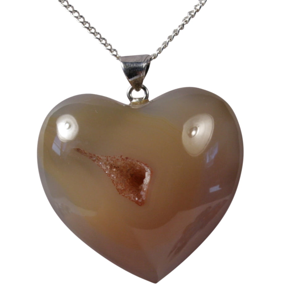 De edelsteen Agaat geeft rust, ontspanning en veiligheid. De kleine geode (opening) in het hart heeft kleine glinsterende kristalletjes. Deze kristalletjes geven kracht van binnen uit. Het hartje staat natuurlijk symbool voor liefde en vriendschap.