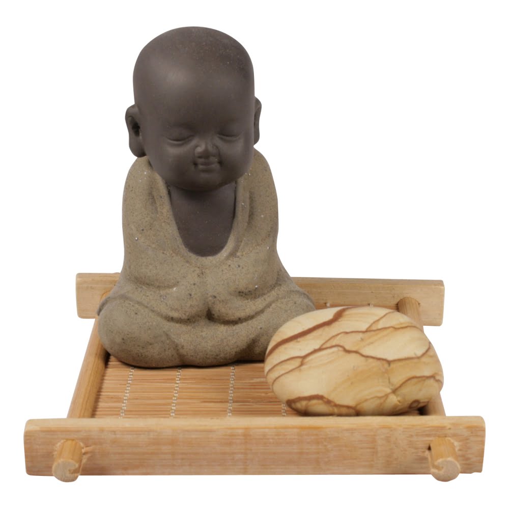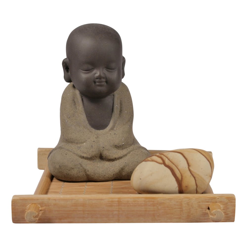 Monnik beeldje Natuur Jaspis op bamboe plankje
