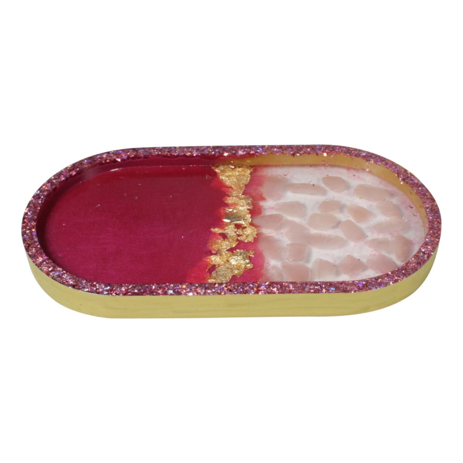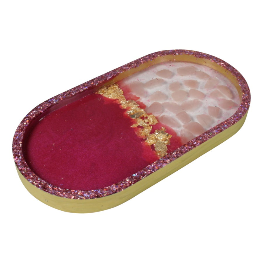 Roze edelstenen tray met keine Rozenkwarts steentjes. De kleine tray of wat grotere onderzetter is gemaakt van giethars in combinatie met kleine roze edelsteentjes. De tray is met de handgemaakt en uniek dus we hebben er maar 1 van op voorraad. De display glinsterd mooi en heeft roze kleuren die goed matchen met de steentjes die er in verwerkt zijn. U kunt dit kleine woonsaccessoire gebruiken voor uw kristallen, sieraden of kaarsen.