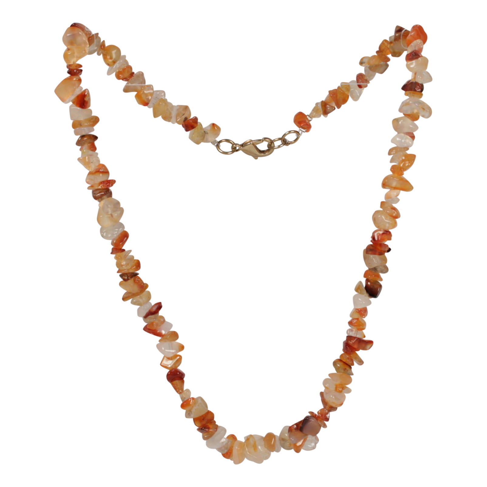 Edelsteen ketting Carneool met splitsteentjes in lichte en intensere kleur oranje. Deze kleur is typisch voor de Carneool steen. Een Juweeltje van moeder aarde. Een persoonlijk cadeau en een mooi sieraad.